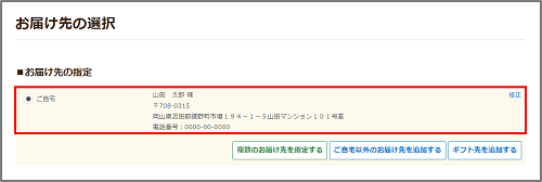 「お届け先」でご自宅を選択してください。