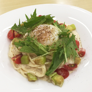 「とろみ焙煎ごま」を使ったツナと揚げなすの冷製ごまクリームソースパスタ