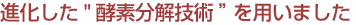 「王乳の華」の開発にあたり、私たちはローヤルゼリー中のタンパク質を酵素であらかじめ細かなペプチドやアミノ酸へ分解し、より体内に摂取しやすい状態にするとともに、アレルギーリスク低減のため独自の酵素分解技術をさらに進化させました。 |